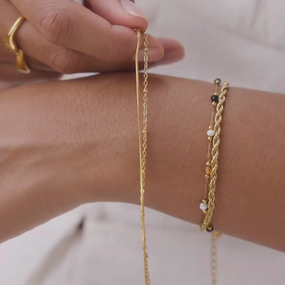 All of our jewelry is made from strong stainless steel and coated with 18K real gold using a PVD (Physical Vapor Deposition) process, making it 100% waterproof and highly durable.