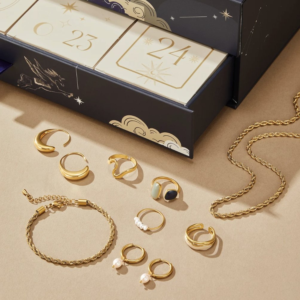 Everyday jewellery that you never need to take off - completely waterproof, tarnish-free & will never lose color. Made with real 18k gold plating and delivered in our beautiful advent calendar packaging.