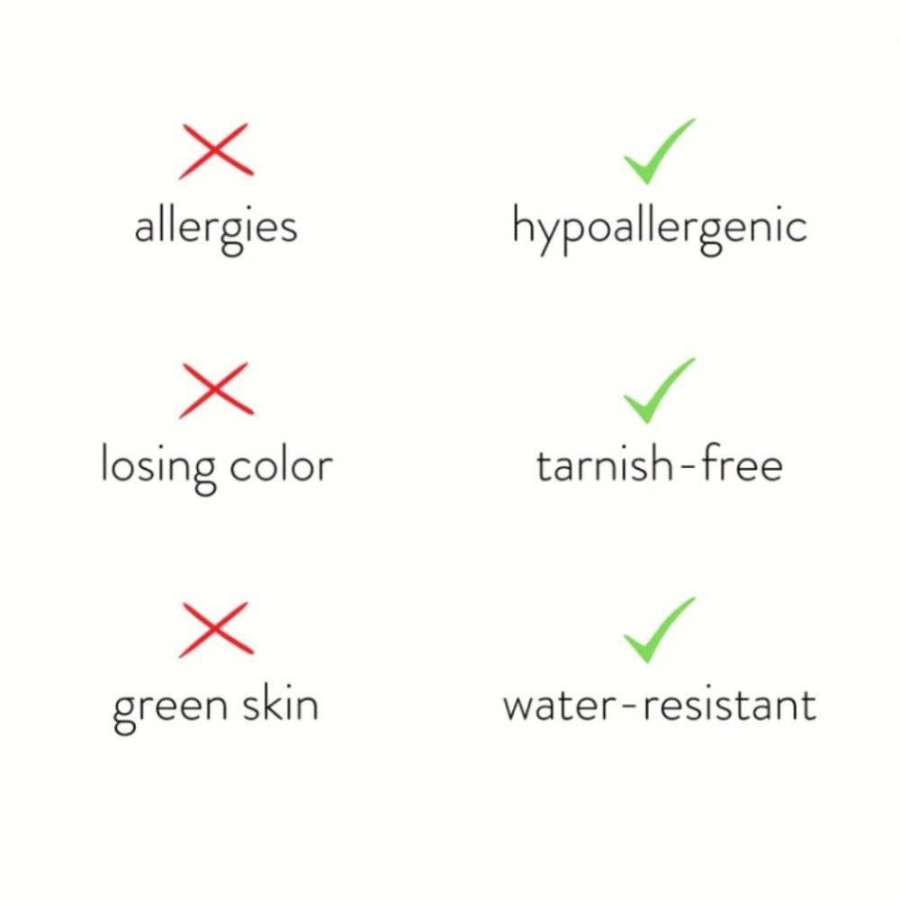 • Waterproof & Tarnish-Free Our jewelry won't fade or tarnish, ever.