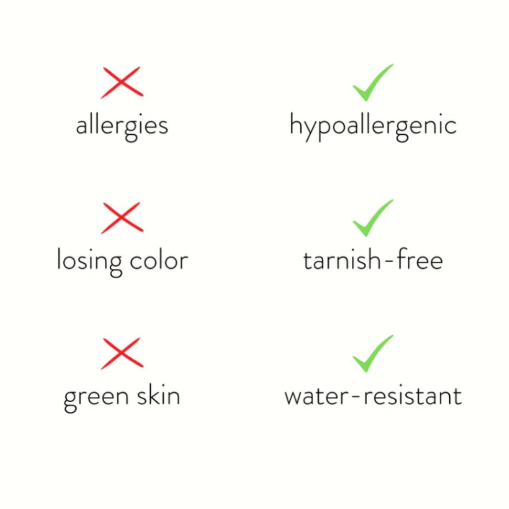 - Waterproof & Tarnish-Free Our jewelry won't fade or tarnish, ever.