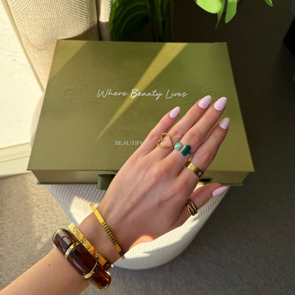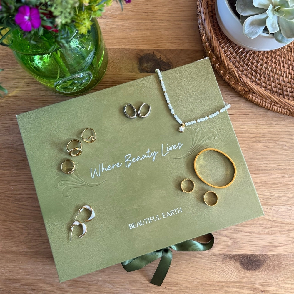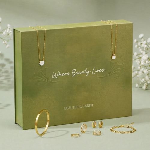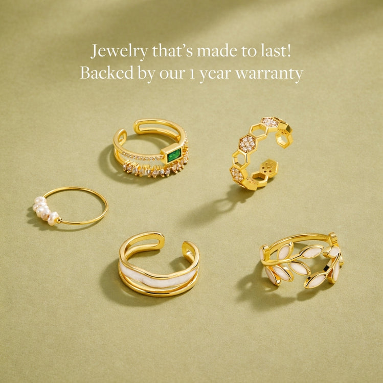Waterproof & tarnish-free jewelry, limited edition spring packaging, and free shipping for all orders.